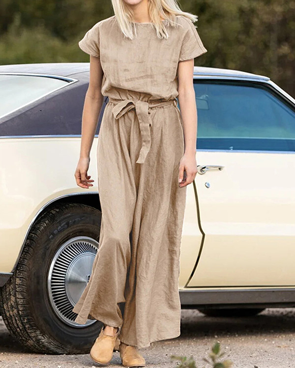 Casual Short Sleeve Drawstring Pocket Linen Dress