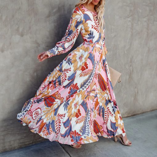 Boat Neck Puff Sleeve Blossom Printed Dress