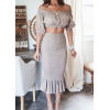 Fashion Fold Solid Color Off Shoulder Two Piece Set