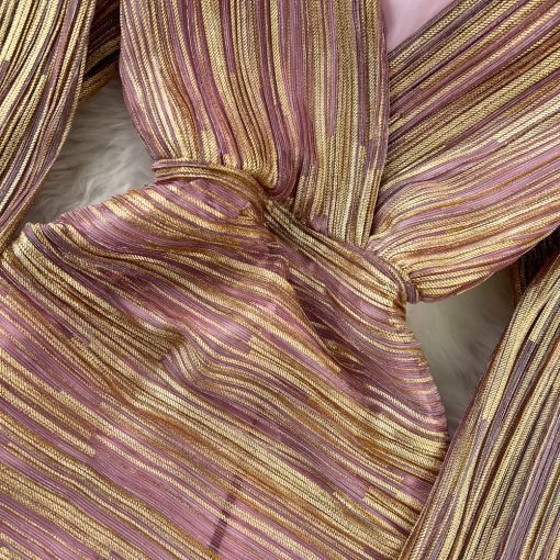 Flaxmaker Long Sleeve Bright Silk V Neck Waist Party Dress