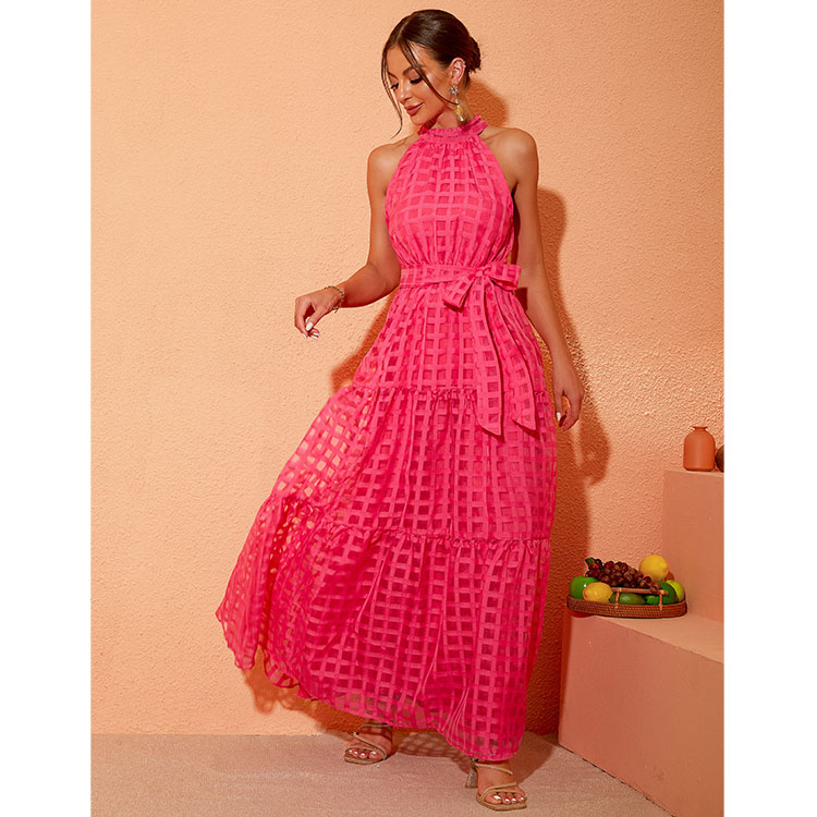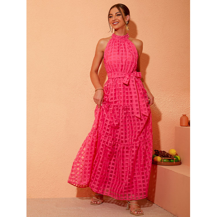 Off Shoulder Plaid Printed Halter Maxi Dress Flaxmaker